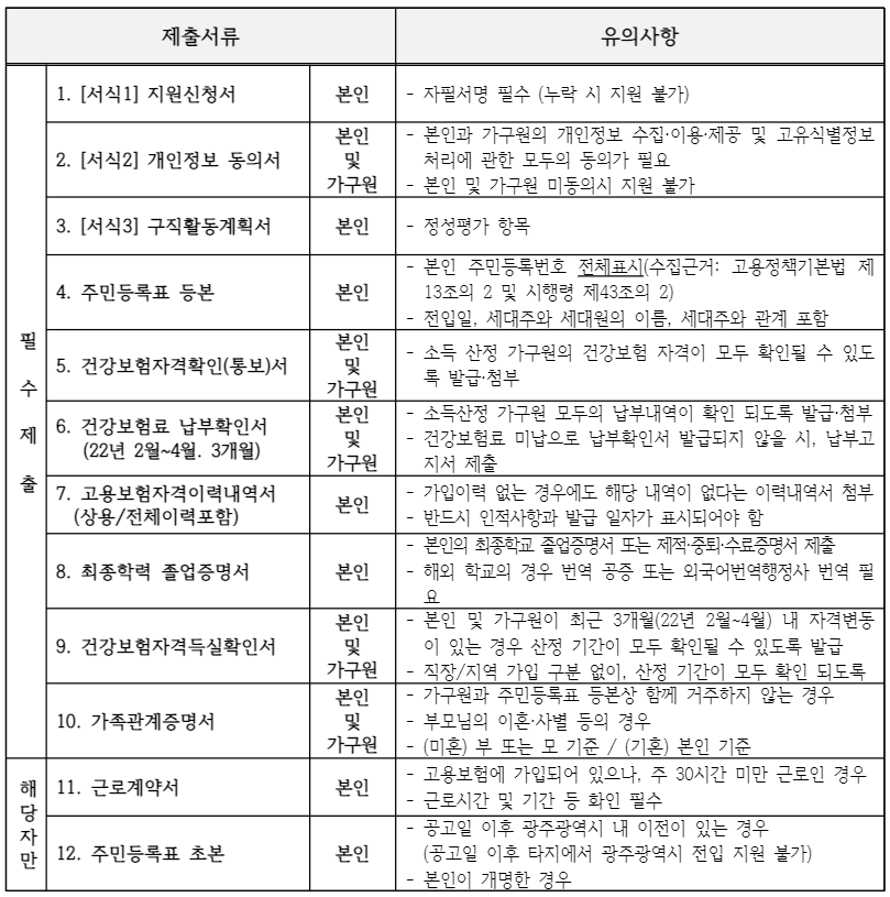 - 광주광역시 거주하는 만19세~34세의 구직활동의지가 있는 미취업 청년