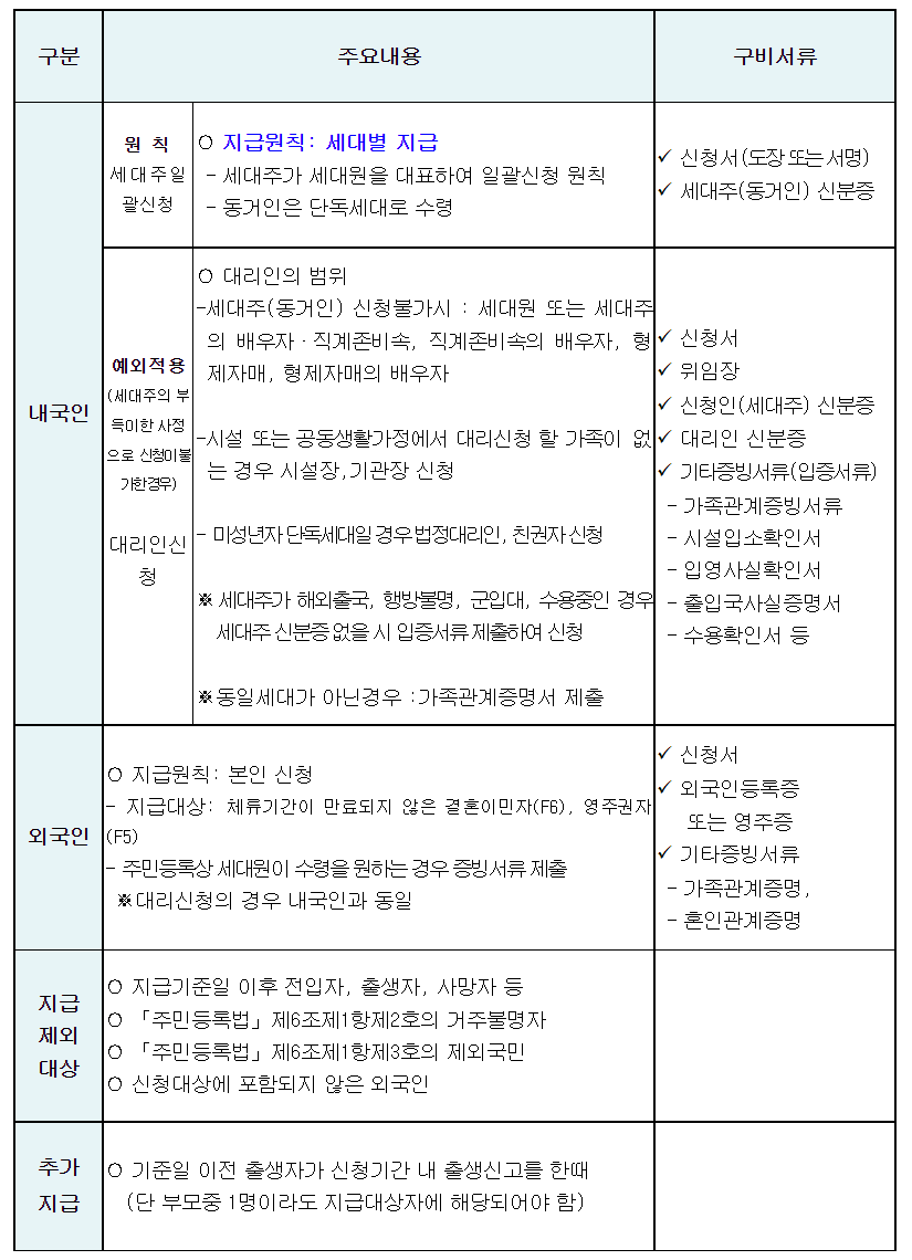 - 세대주 신청 원칙 : ․ 세대주가 세대원을 대표하여 일괄 신청