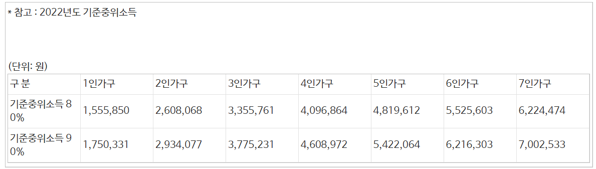 ③ 공고일(’22.5.23.) 기준 동일가구원의 소득인정액이 기준중위소득 80% 이하 가구
