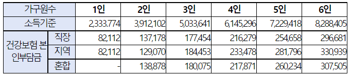 - 가구원 산정 : 세대별 주민등록표(주민등록등본)에 등재된 사람으로 생계와 주거를 같이 하는 2촌 이내의 존비속, 배우자 및 형제자매 포함