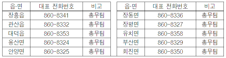 - 장흥군청 재난안전과 안전정책팀(☎ 061-860-6174)