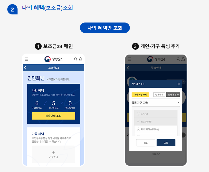 ③ 받을 수 있는 정부혜택 목록 수령