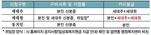 - 세대주가 세대원을 포함하여 일괄 신청이 원칙