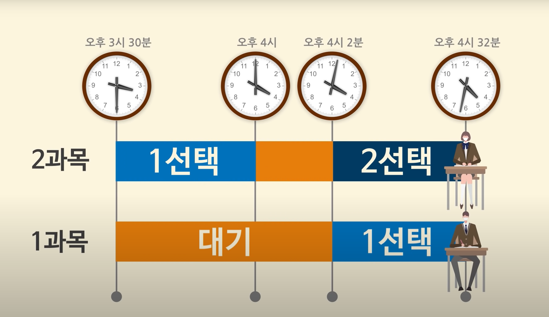 - 탐구 영역 1과목 선택자가 4교시 대기시간에 자습 또는 답안지 마킹한 경우