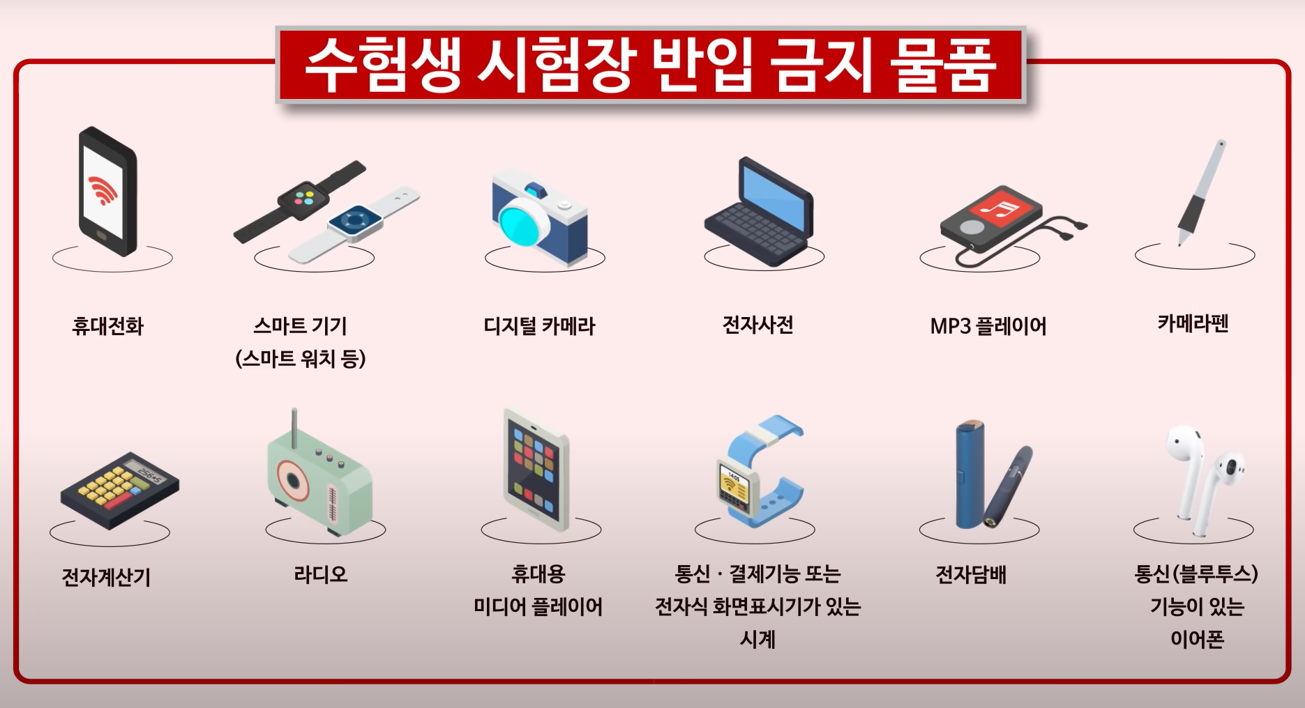 - 휴대전화/전자기기 등 시험장 반입 금지 물품을 소지한 경우