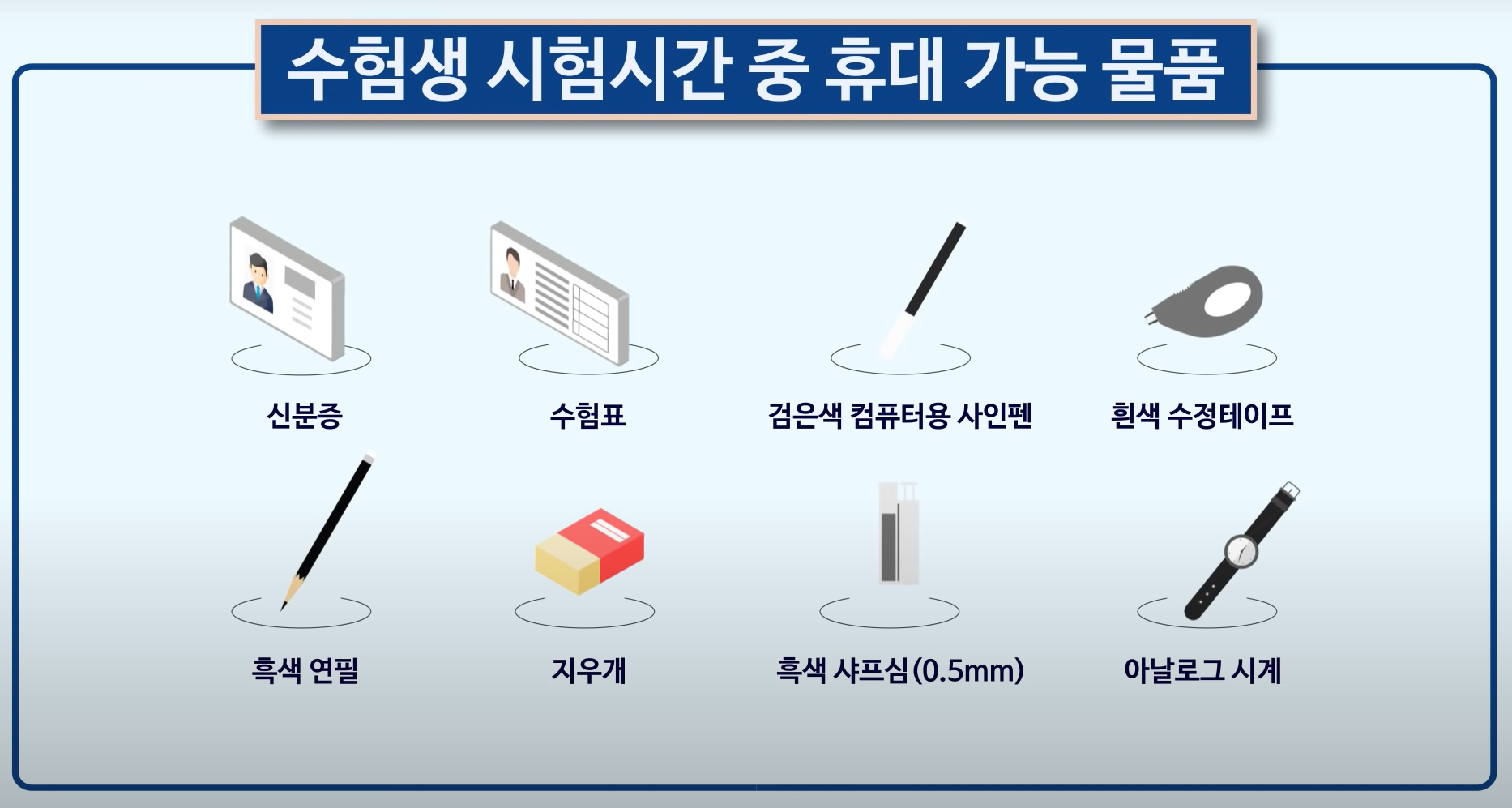 - 시험장 반입 관련 모든 물품 정확히 확인